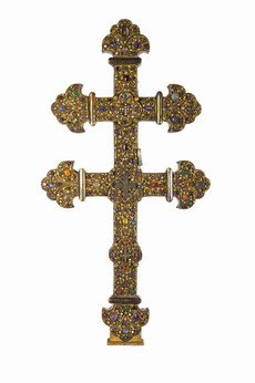 Cette croix fut créée pour une "fille" de l'abbaye de Clairvaux, Clairmarais, afin d'accueillir un morceau de la Vraie-Croix rapportée des Croisades. S'affranchissant de l'esprit d'austérité voulu par saint Bernard, la Croix de la Vraie-Croix est un chef-d'oeuvre de l'orfèvrerie médiévale.